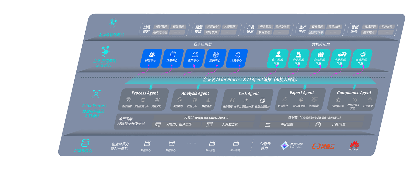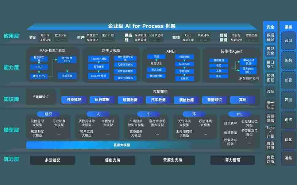 NG娱乐问学智车解决方案是一套基于AI技术的汽车行业智能化系统,,,覆盖从底层算力到顶层AI应用的全栈方案。。方案由算力层、、、、模型层和应用层组成:算力层,,,方案支持多种一体机配置,,,具备云端灵活部署、、、、多云适配以及动态优化计算资源的能力;模型层,,,,NG娱乐问学平台版提供了企业级AI应用一站式构建与管理平台,,,支持基于后训练强化技术的汽车企业专属模型的训练、、、评测和运营;应用层,,,,NG娱乐问学DeepSeek版提供包括超级员工、、、智能招采、、、智能营销、、、智能客服、、AI for BI等一系列解决方案,,可助力汽车行业实现数字化转型,,让管理更智能、、、、响应更敏捷。。。
